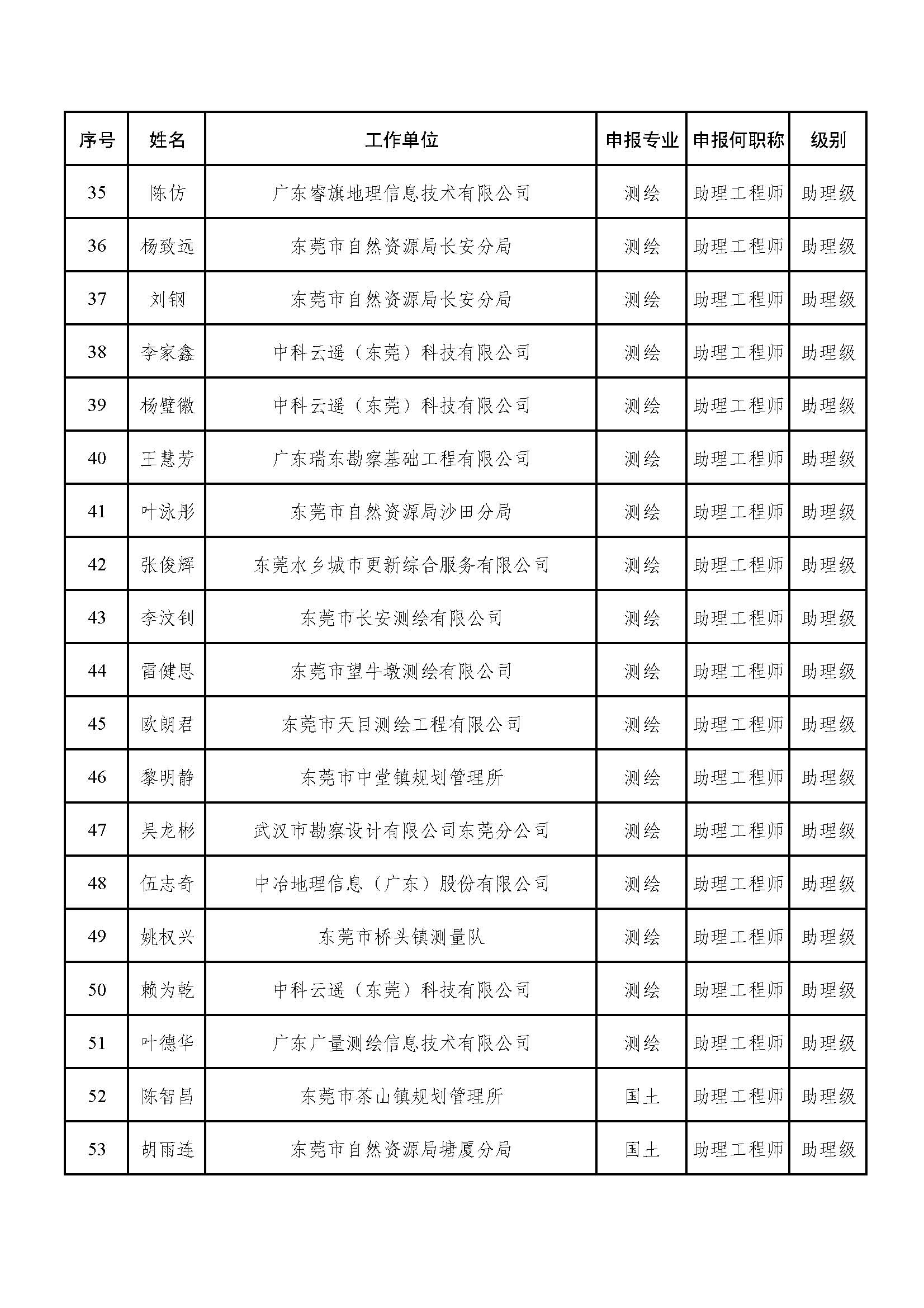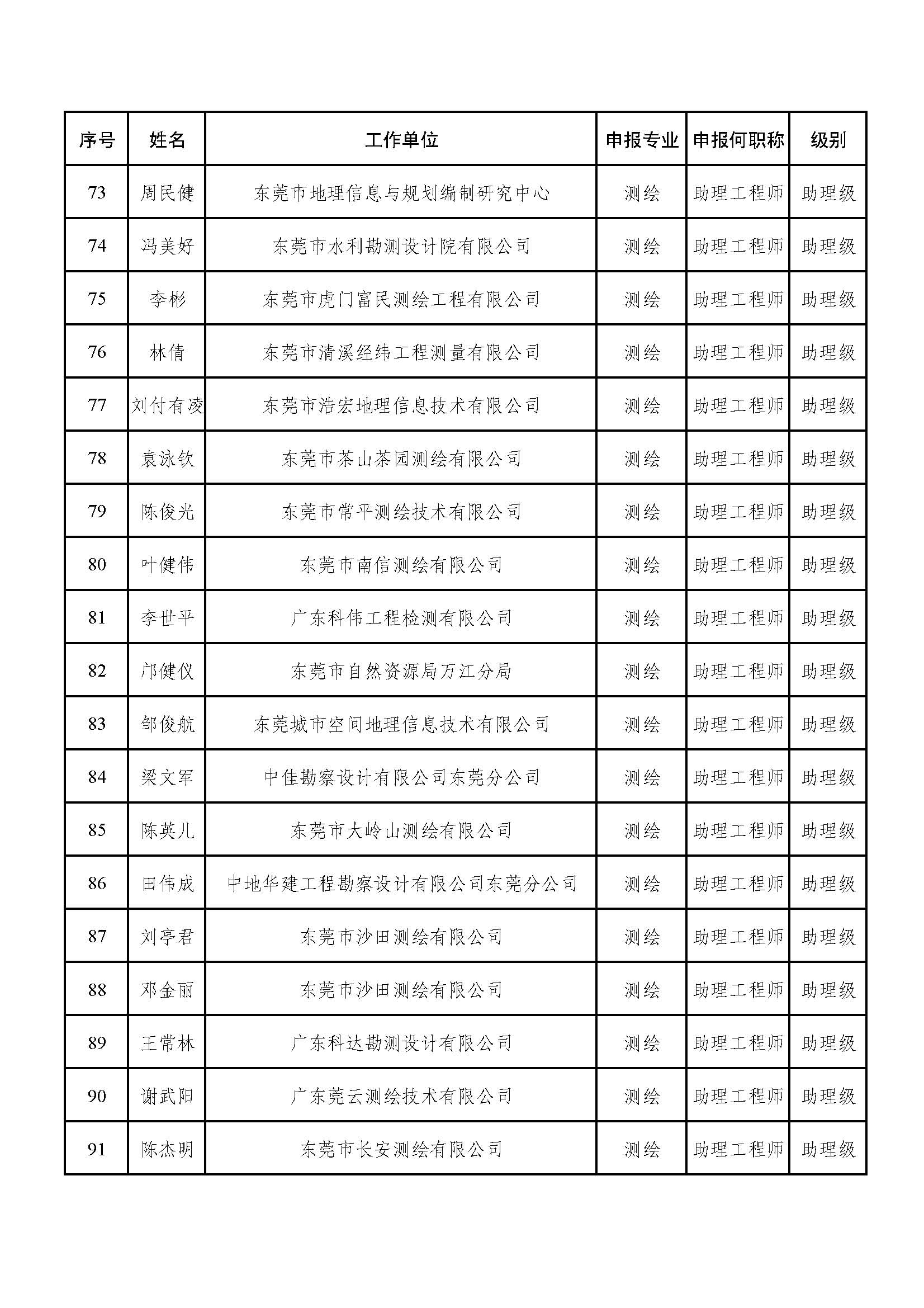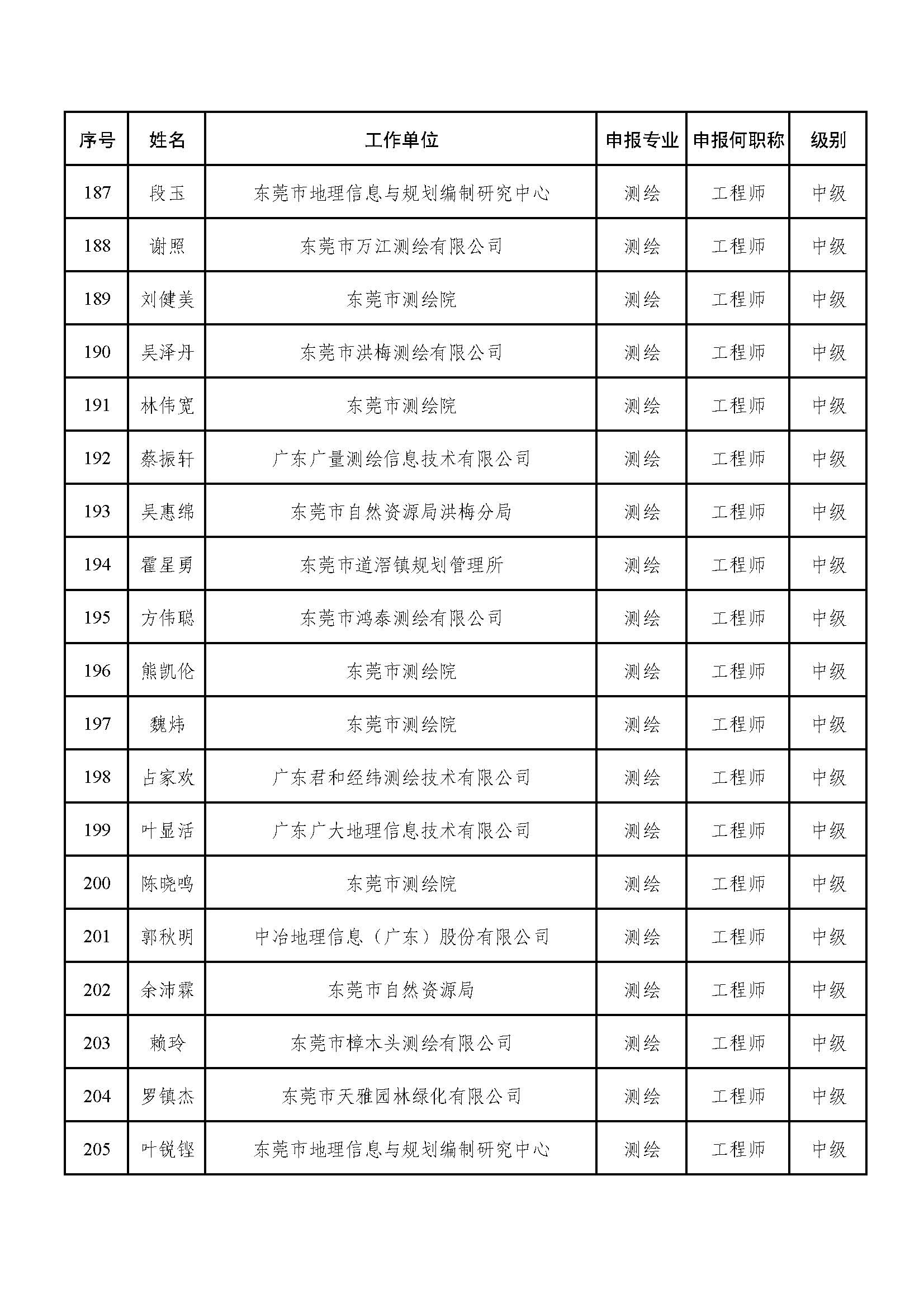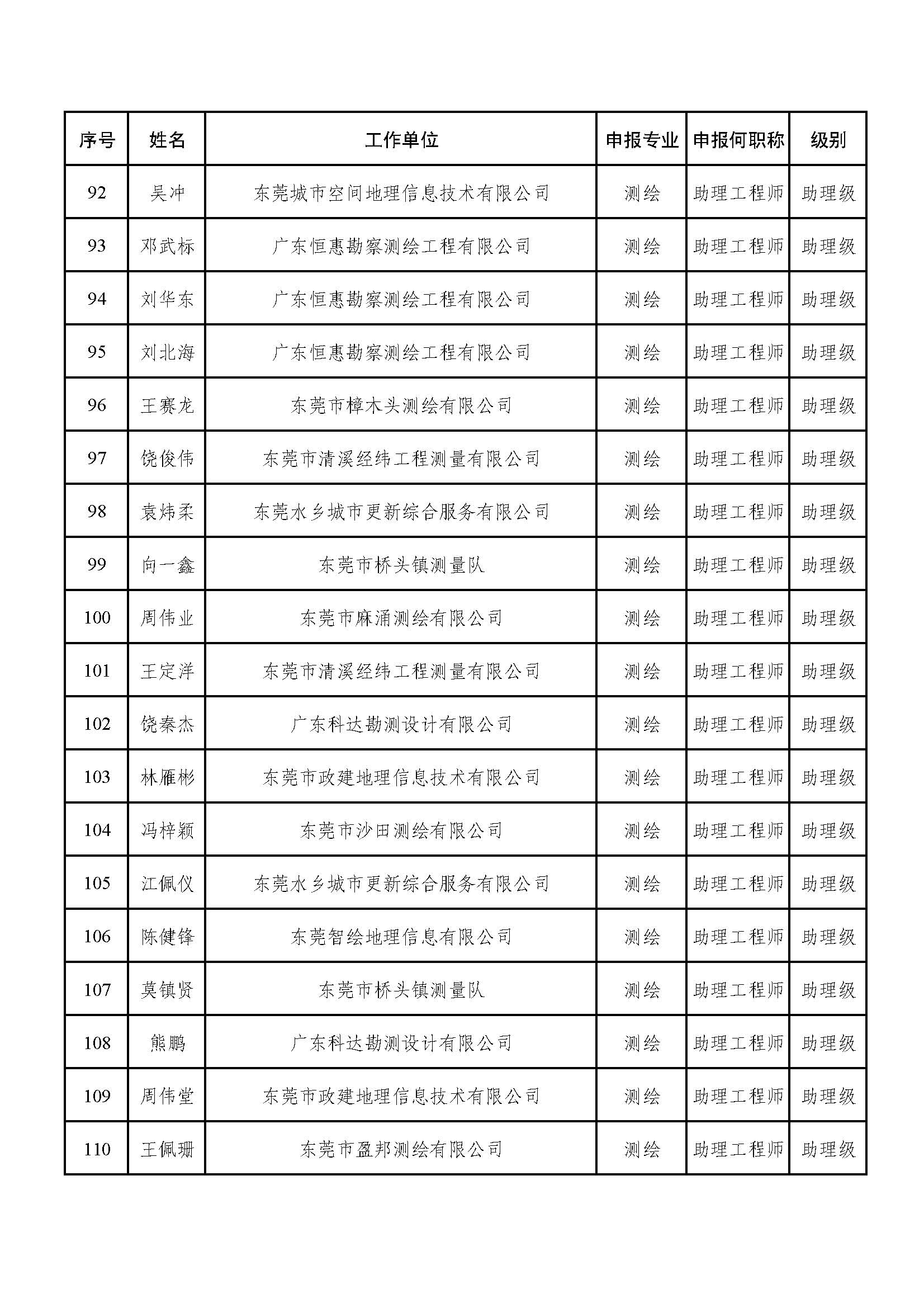 2023年度东莞市自然资源专业中级职称评审委员会专家评审工作已结束。经东莞市工程系列自然资源专业中级职称评审委员会评审,钟依伟等23名同志取得技术员职称,黄禧等149名同志取得助理工程师职称,蔡德楠等72名同志取得工程师称职;陈怡冰等40名同志未获评审通过(附件1)。现根据有关规定予以公示。公示时间从即日起,公示期5个工作日。